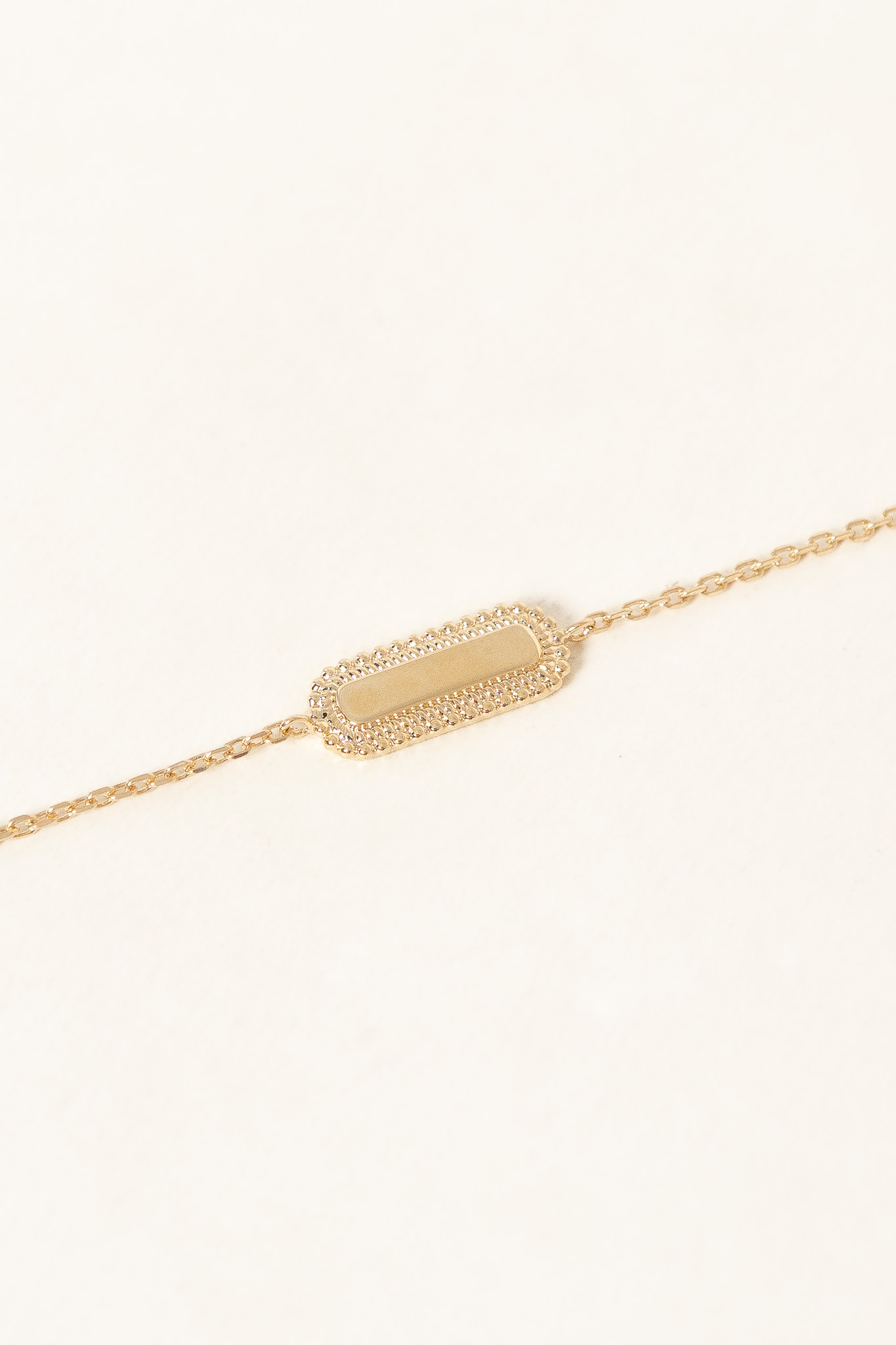 Bracelet doré à maille fine, avec une petite plaque à graver