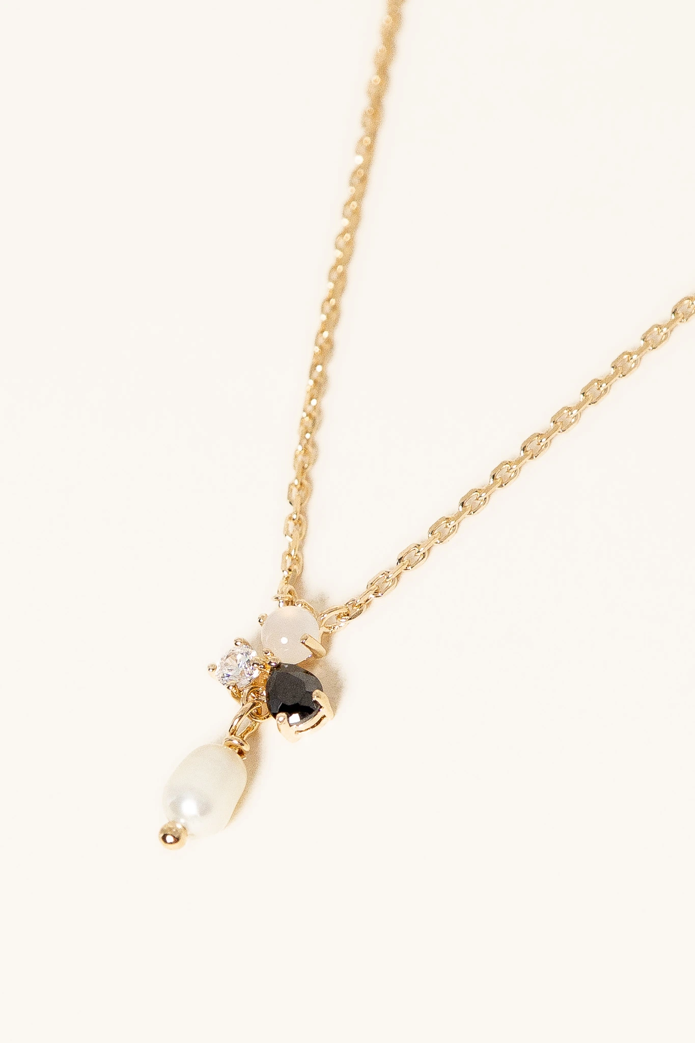 Collier doré, à maille fine, avec un pendant, serti d’oxydes de zirconium, et une perle de culture