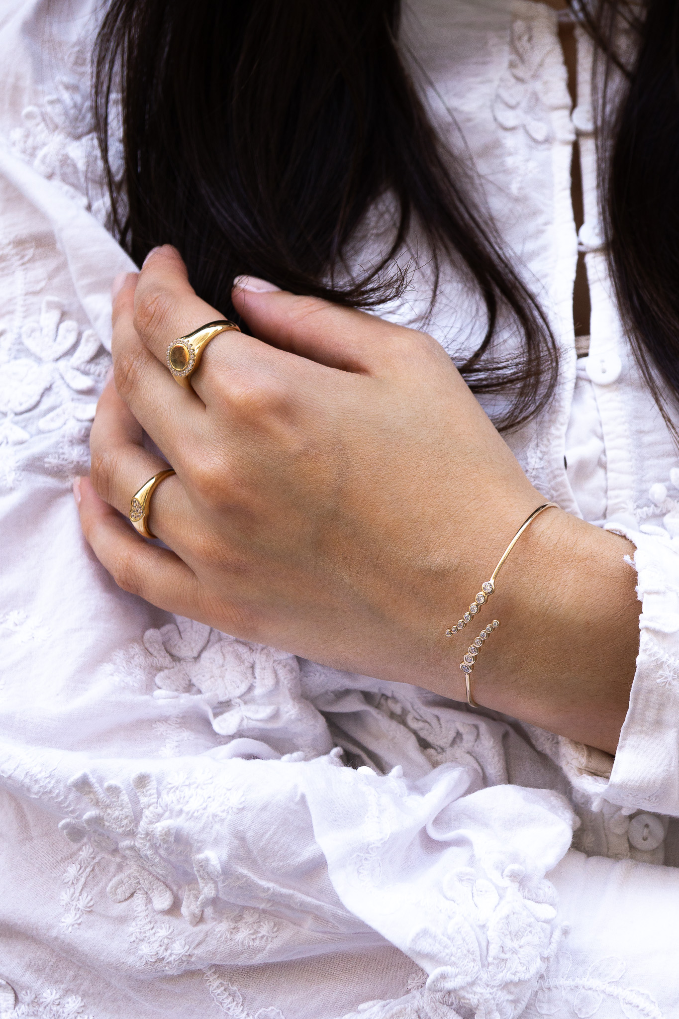 • Jonc doré et croisé, serti d’oxydes de zirconium